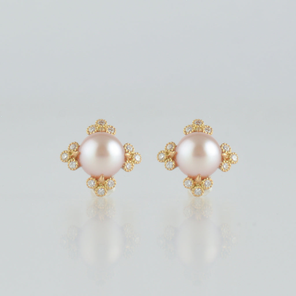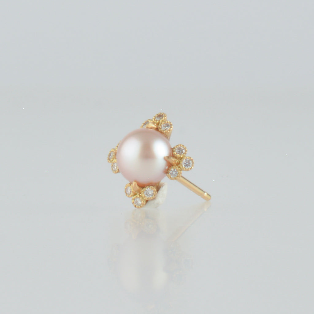 淡い色の淡水パールを様々な角度できらめくメレダイヤで包み込んだspread コレクション。雪の結晶のような清らかな佇まいの、可憐さと品格を合わせもつホリデーシーズン数量限定のコレクションです。