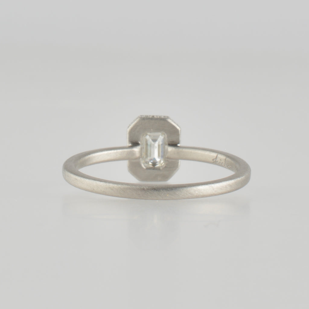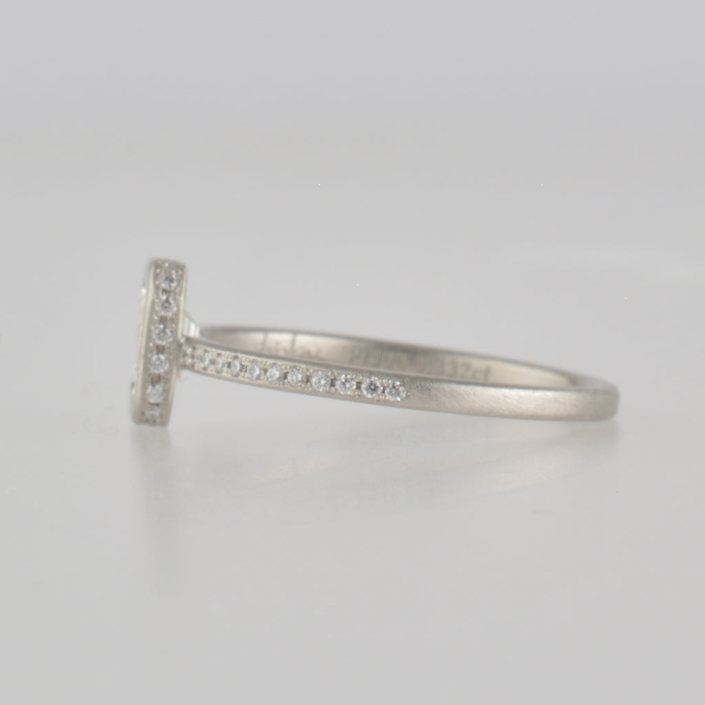 ダイヤモンドに接した面のみ鏡面で磨き、さりげなく光を添えることで、マットな質感の中からダイヤモンドの輝きがふっと現れるようなお仕立てに。
