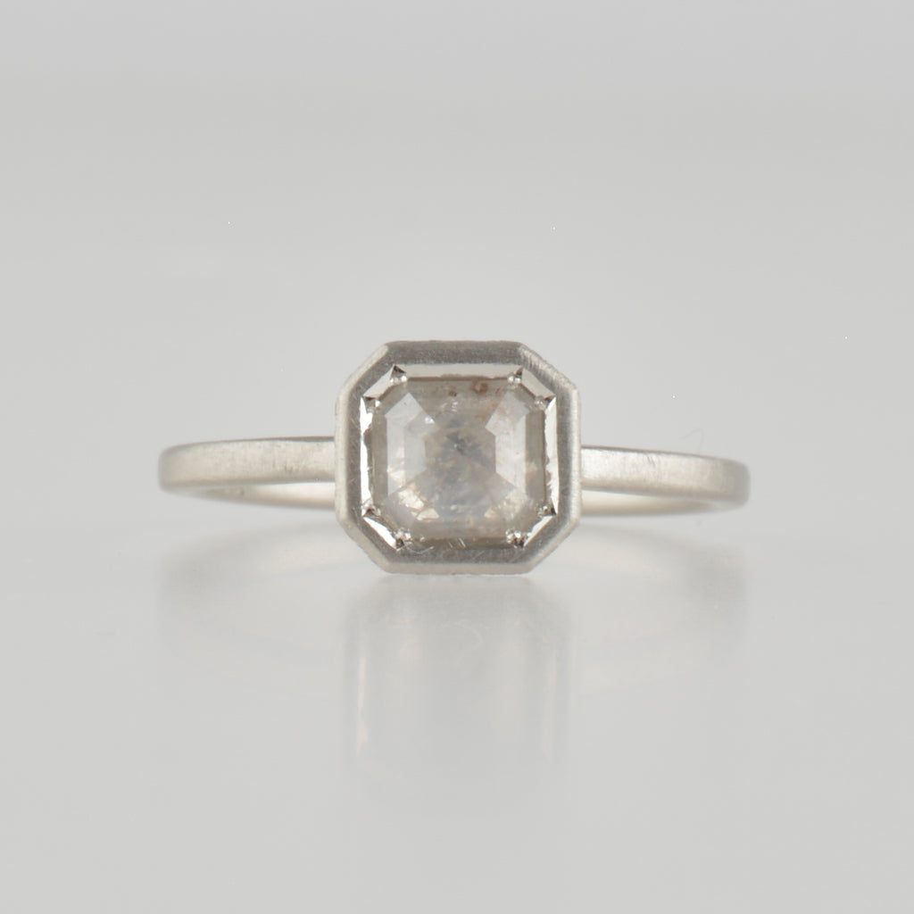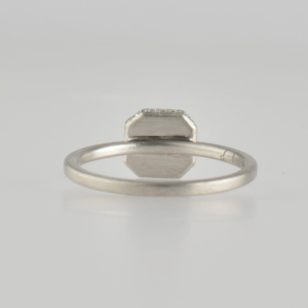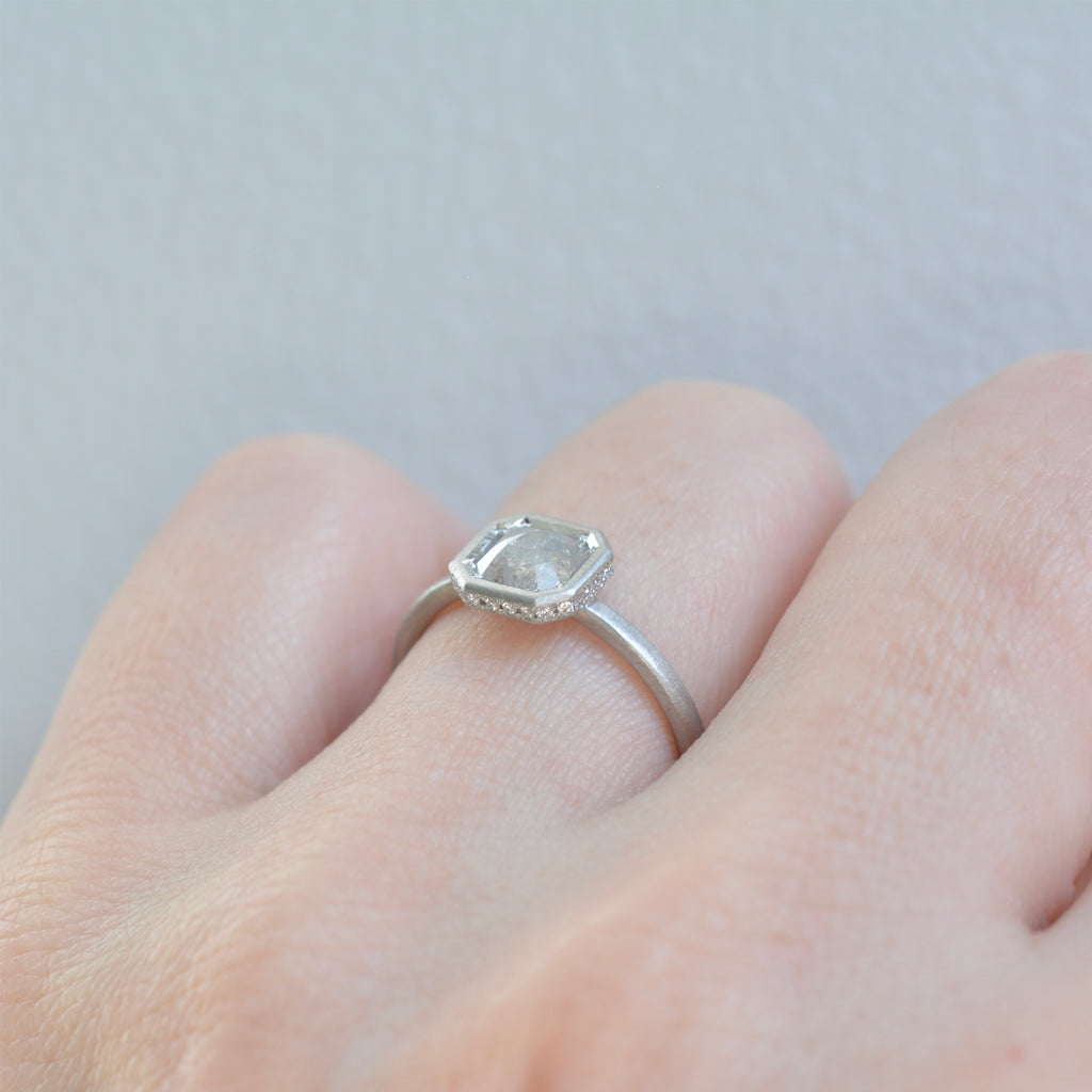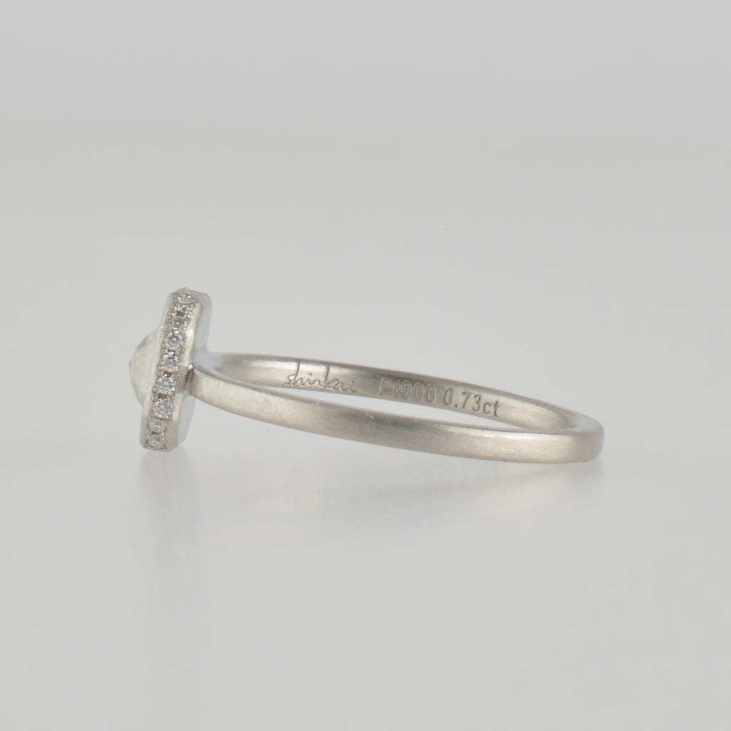 ダイヤモンドに接した面のみ鏡面で磨き、さりげなく光を添えることで、マットな質感の中からダイヤモンドの輝きがふっと現れるようなお仕立てに。