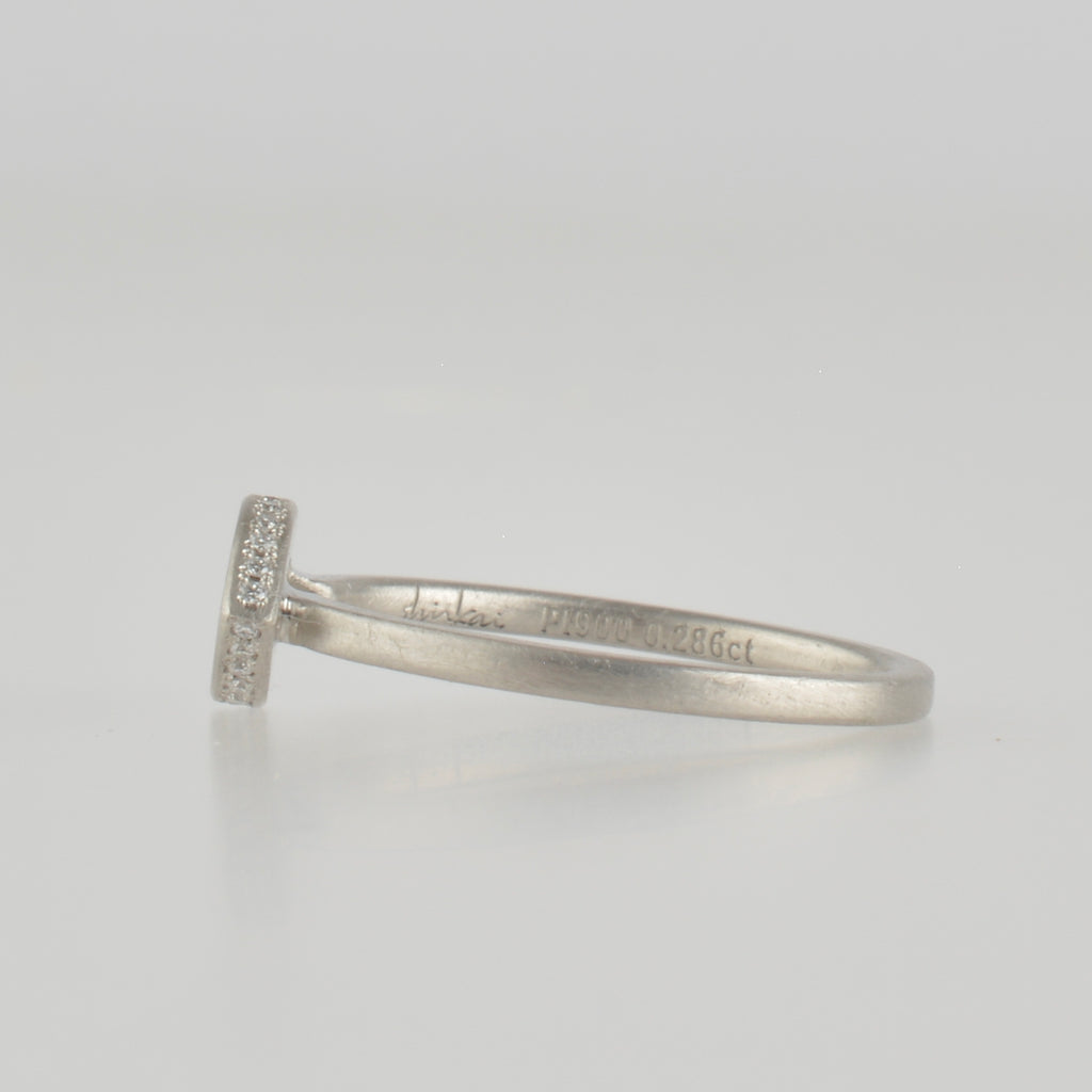 ダイヤモンドに接した面のみ鏡面で磨き、さりげなく光を添えることで、マットな質感の中からダイヤモンドの輝きがふっと現れるようなお仕立てに。