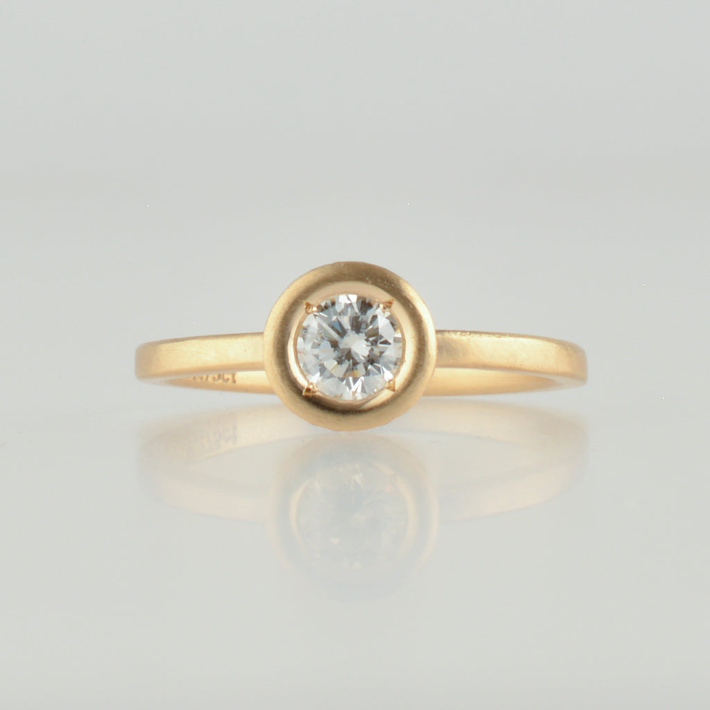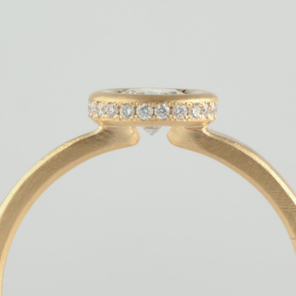 ダイヤモンドに接した面のみ鏡面で磨き、さりげなく光を添えることで、マットな質感の中からダイヤモンドの輝きがふっと現れるようなお仕立てに。