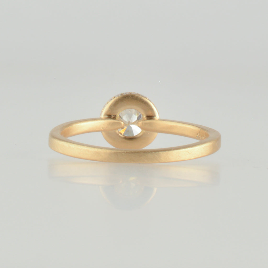 側面には贅沢にメレダイヤをセッティングし、横顔も美しく仕上げました。毎日身につけて一緒に日々を重ねられるダイヤモンドリングは、気取らないエンゲージにもお勧めです。